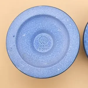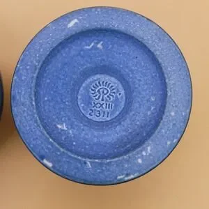 Each measures approximately 3.5 inches across and 1.5 inches tall. Both pieces are in excellent condition, free from chips, cracks, or repairs. Underside shows the impressed Rookwood flame mark, shape number 2311, and Roman numerals XXIII, consistent with early 1920s (1923) production.
