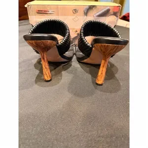 Keywords: Vetaste heels, women’s mule, slide sandals, black stiletto, square toe heels, woven strap, braided sandals, slip on heels, party shoes, cocktail heels, wedding guest shoes, evening heels, size 7.5 shoes, dress sandals, open toe heels