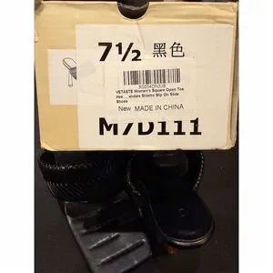 Vetaste Womens Slide Sandals Black Woven Square Toe Stiletto Heels 7.5 Box