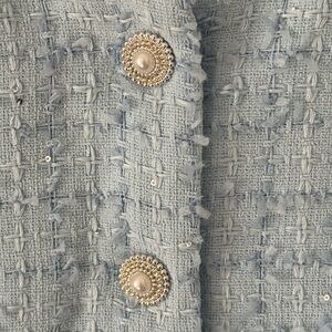 Mable Tweed Matching Set Light Blue Pearl Button Vest Shorts Size M
