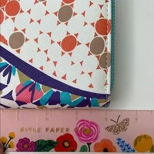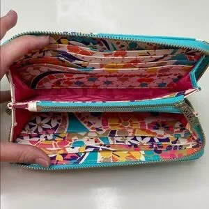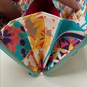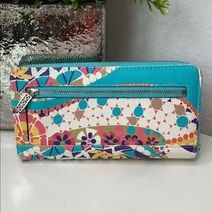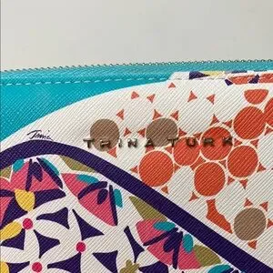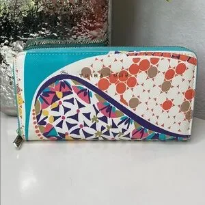 Trina Turk Zip Around Continental Vegan Wallet Colorful Geometric Turquoise