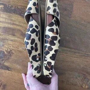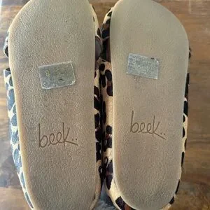 Stylish leopard print sandals by Beek. Comfortable and trendy for everyday wear. Gently preowned
