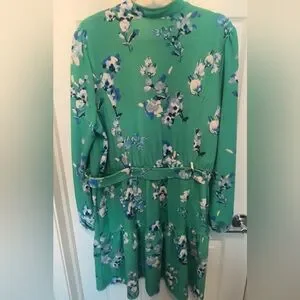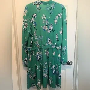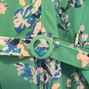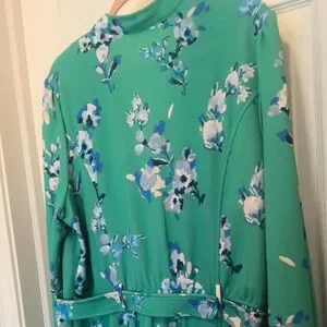 This Floral Sage/Ivory color, 3/4 quarter length sleeve dress features a belted waist and gentle flare hem.