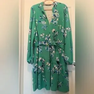 Danny & Nicole Women's Sage/Ivory Funnel V-Neck Dress Size 18