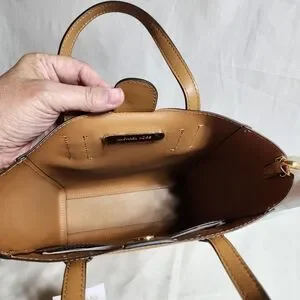 Elevate your style with the Michael Kors Tan Leather Tote Bag. This elegant bag features a sleek design and a versatile tan color, perfect for any occasion. Crafted with high-quality materials, it offers both durability and sophistication. Ideal for everyday use, this tote is a must-have accessory. never used