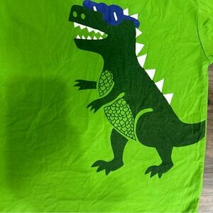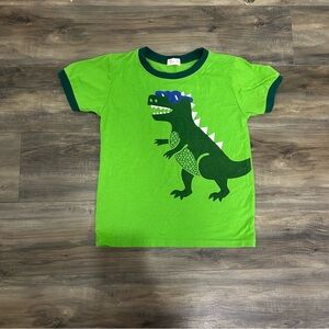 Bright green tee featuring a fun dark green dinosaur graphic with navy ringer accents. Soft, breathable knit for everyday play.
