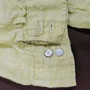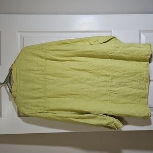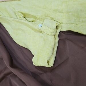 Tahari Lime Linen Button Up Side Slit Long Roll Tab Sleeve Tunic Top Size L