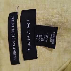 Tahari Lime Linen Button Up Side Slit Long Roll Tab Sleeve Tunic Top Size 1X