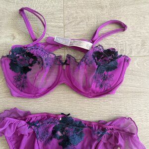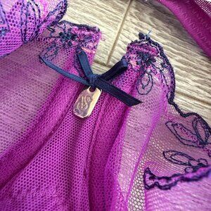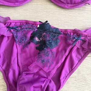 Victoria’s Secret Purple Embroidered Lace Bra Panty Set 34C S