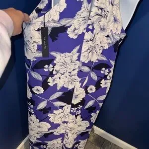 Tahari- NWT Purple Floral Maxi Dress with White Blooms Size Medium