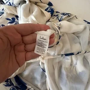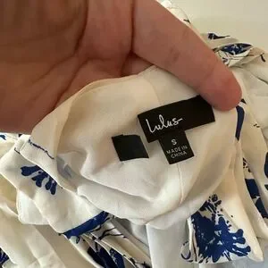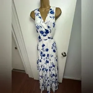 Lulus Blue and White, Lindsie, Floral Print,Pleated, Wrap women’s Charming maxi Dress. NWOT, Size S