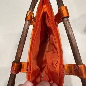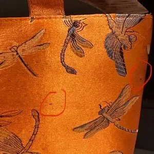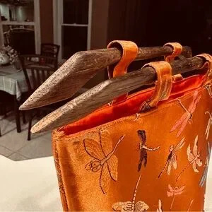 Vintage Dragonfly Silk Bag Wood Handle Artisanal Boho Asian Statement