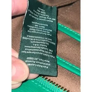 Lauren Ralph Lauren Green Textured Faux Leather Tote Bag Zip Top RL Charm