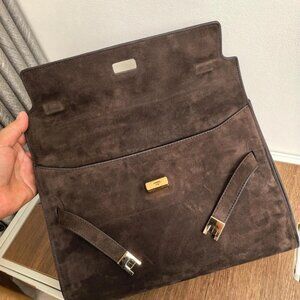 Auth Tory Burch Large Lee Radziwill Suede Shoulder Bag Dark Cocoa