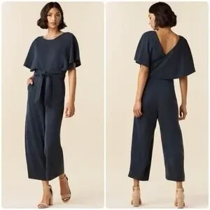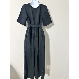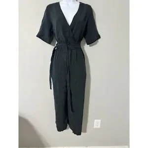VETTA Capsule Black Wrap Jumpsuit Short Sleeve Wide Leg Tencel Linen Size M EUC