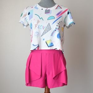 Gorgeous and perfect for Spring/Summer silk shorts. Modern ruffle front, side pockets and side zip closure.