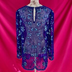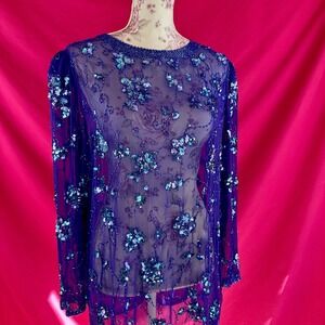 Sequin Beaded Sheer Purple Tunic Top XL Vintage Y2K Lillie Rubin Glam Party
