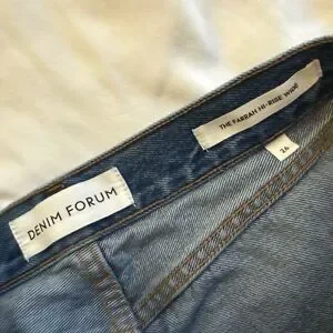 From the brand: Inspired by bold, adventurous '70s icons, The Farrah is Denim Forum’s signature wide-leg jean. With a high rise and slim hip, The Farrah hugs the figure and gradually widens from the leg, ending in a clean hem. They're made with heavyweight, non-stretch denim that molds to your body over time. This fabric is sourced from a premier Italian mill and made with 100% regenagri-certified regenerative cotton. This version comes in a light medium indigo wash.