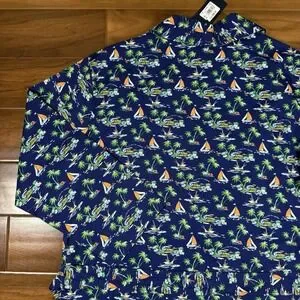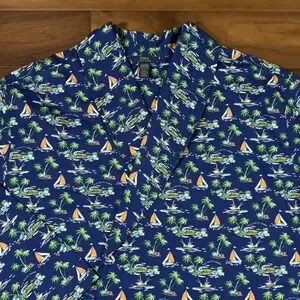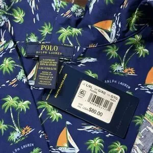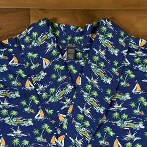 Polo Ralph Lauren Mens Size L / XL Blue Tropical Sailboat Print 100% Cotton Robe