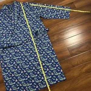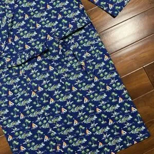 Polo Ralph Lauren Men's Size L / XL Blue Tropical Sailboat Print 100% Cotton Robe, No Stretch, Tie Belt, Pockets