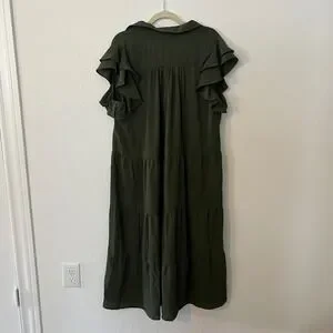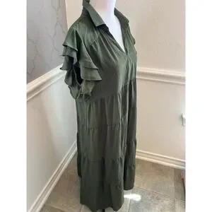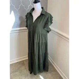 Keywords: Umgee, Maxi Dress, Olive Green, Ruffle Sleeve, Tiered Dress, Casual Dress, XL, Women's Fashion, Flowy Dress, Summer Dress, Bohemian Dress, Collared Dress, V-Neck