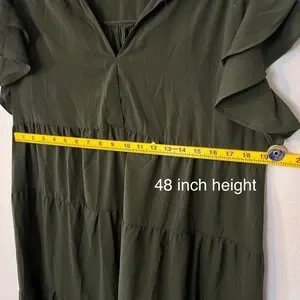 Umgee XL Olive Green Maxi Dress Ruffle Short Sleeve Tiered Casual Boho Flowy
