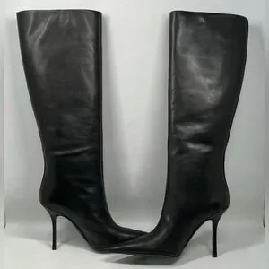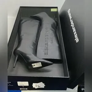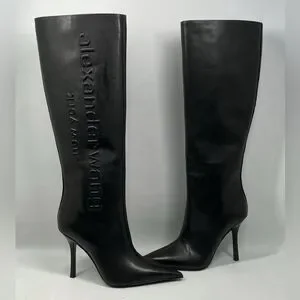Alexander Wang Delphine brand-embossed leather heeled knee-high boots size 36.5