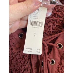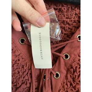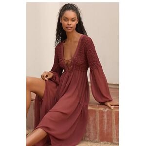 Anthropologie Sheer Cover-Up Midi Dress Crimson Smocked Lace-Up Boho Small NEW