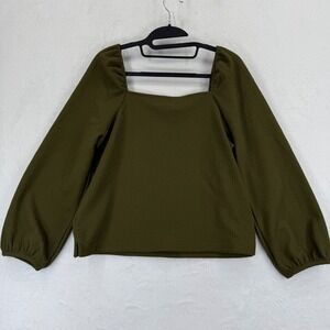 Madewell Womens Top Olive Green Square Neck Long Sleeve Textured Blouse Small