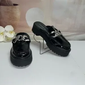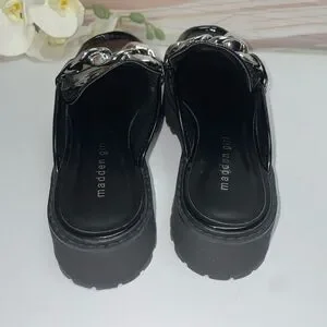 NEW! Madden Girl Black Mules with Silver Chain