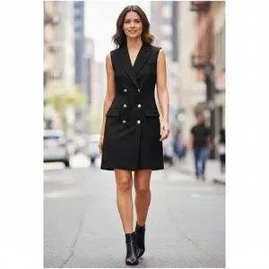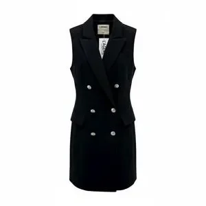 Keywords: LAGENCE, blazer dress, sleeveless, double breasted, black dress, tailored, sophisticated, professional, evening wear, business casual, statement dress, modern, formal, event, mob wife, New Years, New Year's Eve, black tie