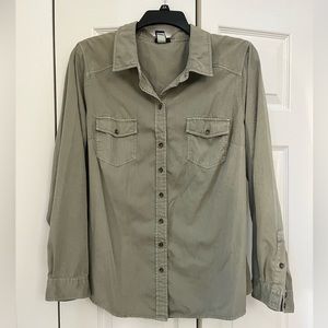 EUC - Torrid Size 2 - Army Green/ Gray Button Down Denim Shirt