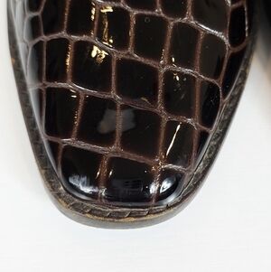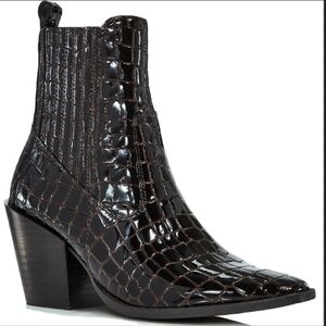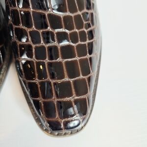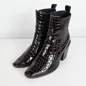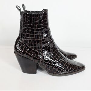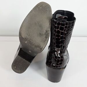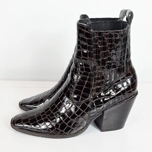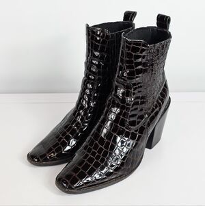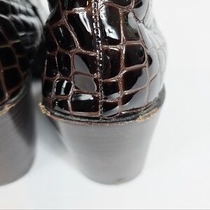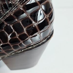 Aqua Dark Brown Patent Leather Crocodile Embossed Ankle Bootie Women's Size 8M