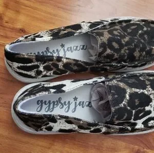 Really cute leopard print, slip on, gypsy jazz size 8.5 shoes. Bought and never worn, still has paper inside. No box or tags.