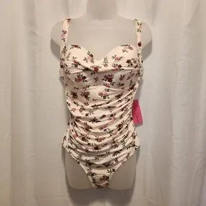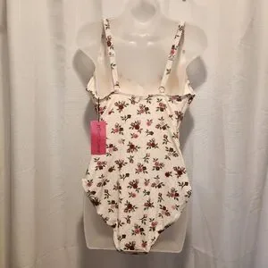 Betsey Johnson Barely There Rose Floral Print One-Piece Swimsuit Size XL Summer