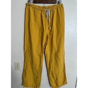 Moo 100% Linen Top and Pants Set Mustard Yellow Womans Medium