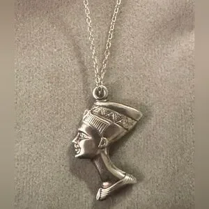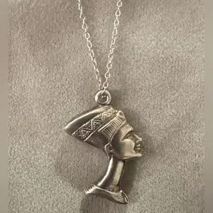 Handmade vintage Nefertiti pendant necklace. This necklace features a beautiful vintage 3D double sided genuine 925 Sterling silver Nefertiti charm on a dainty yet sturdy genuine Italian 925 Sterling silver chain measuring approximately 18in/45cm (“princess length”) long. The charm measures approximately 2.4cm in length and weighs approx 2.66g. It has a slightly oxidized/aged finish and is exactly as pictured. Similar to a Nefertiti necklace seen on the iconic zendaya :) (also pictured)
