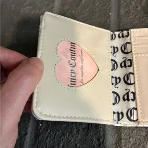 Juicy Couture White Wallet with Pink Cherry Print and Gold Heart Charm