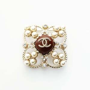 CHANEL Gold Logo Brooch