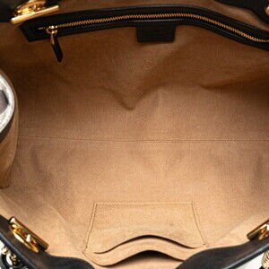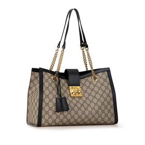 Gucci GG Supreme Padlock Chain Shoulder Bag Beige Tan Black Leather