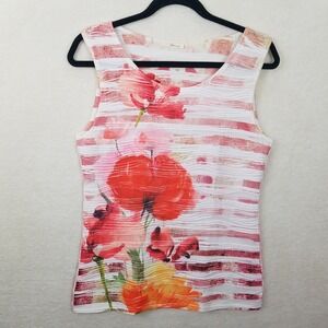 Memuse Tank Top Floral Print White Red Sleeveless Women's Size M