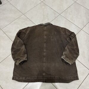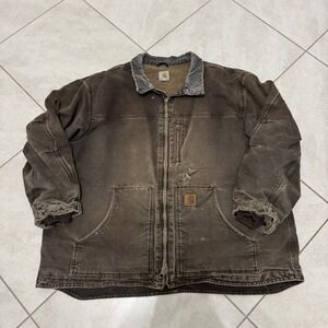 Carhartt Jacket Mens 3XL Brown Canvas Full Zip Sherpa Lined Distressed C61-DKB