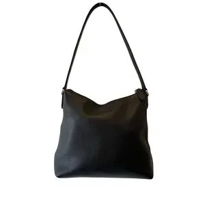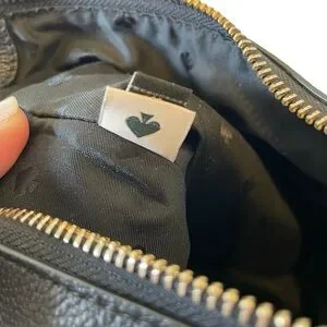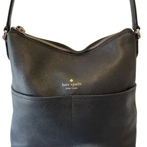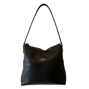 Kate Spade New York Bailey Shoulder Bag. This medium-sized bag is crafted from black textured pebbled leather and features a foil embossed logo with silver or gold-tone hardware.