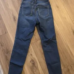 Upgrade your wardrobe with these stylish indigo skinny jeans. Perfect for a chic and comfortable look. 27 inch inseam and plenty of stretch