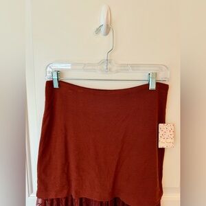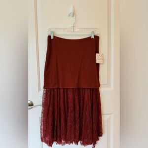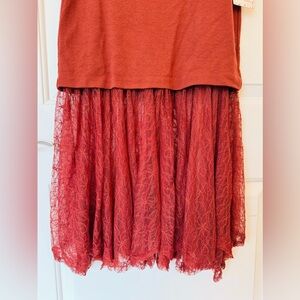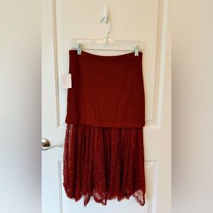 NWT Free People Two For One Sheer Lace Bottom Skirt-Red Rust