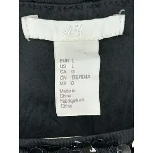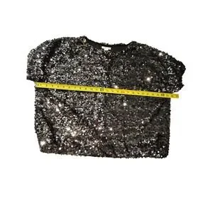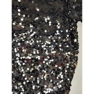 HM Black Sequin Short Sleeve Top Womens Large Boxy Scoop Neck Party Blouse