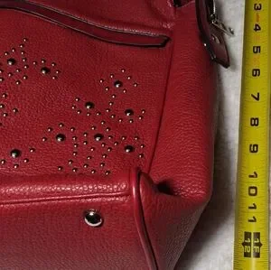 The bold red color and studded design give it a trendy rocker / festival style while still being practical for everyday use.