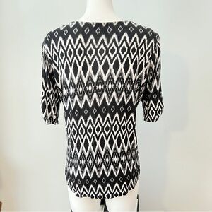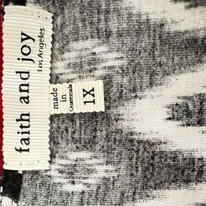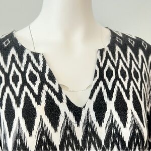 This striking blouse from Faith and Joy features a bold black and white graphic design with a tie front detail. The short sleeves and V-neckline add a touch of elegance, making it a standout piece for any wardrobe. Great preowned condition. Smoke free home. Bundle and save, check out my other listings. Fast shipping! Feel free to ask me any questions.