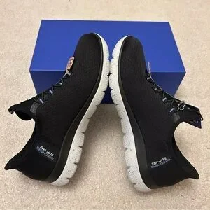 New with tags without box. The Summit slip-on sneakers from Skechers feature a Hands Free Slip-Ins:™ molded heel that you can slide into and head out the door. This pair rocks a Stretch Fit® engineered knit upper with an Ankle Pillow™ and an Air-Cooled Memory Foam® footbed for added comfort