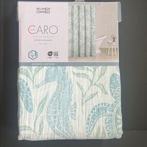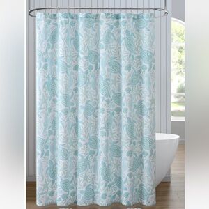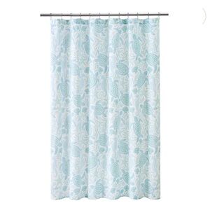 New Caro Home Floral Sea Life Pattern Shower Curtain - Aquatic Blue